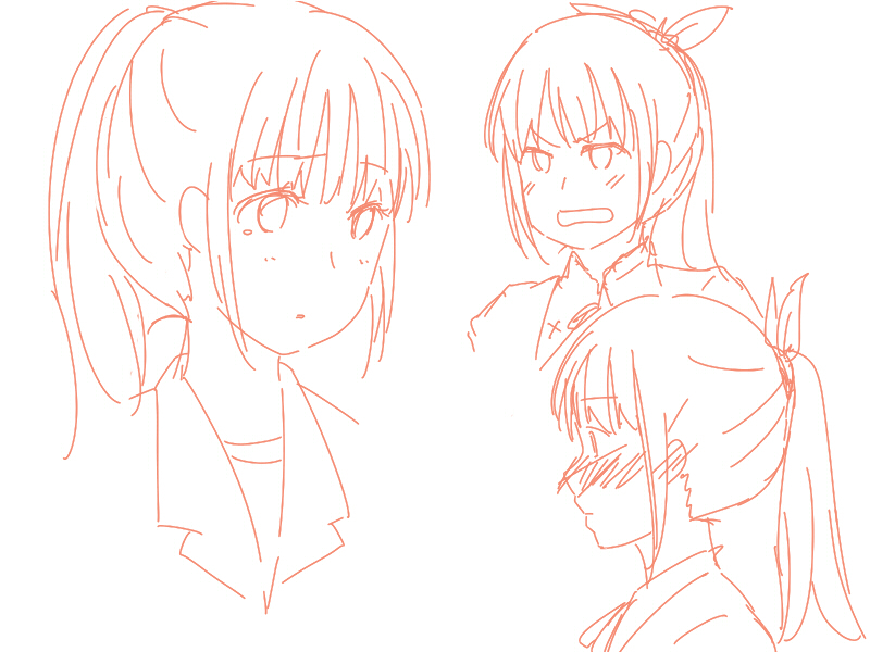 とりあえず最後に、上の方の落書きでうっかりポニテ忘れたので、こんな見た目かなぁアズサちゃんはー、というてきとーな落書きを