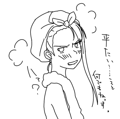 風呂漫画ネタに乗ってバカくんを……と思いましたが難しそうだったので結局平たい胸族という抄子せんぱいへのセクハラに落ち着きました。風呂上がり。ちょい髪長かったかな。