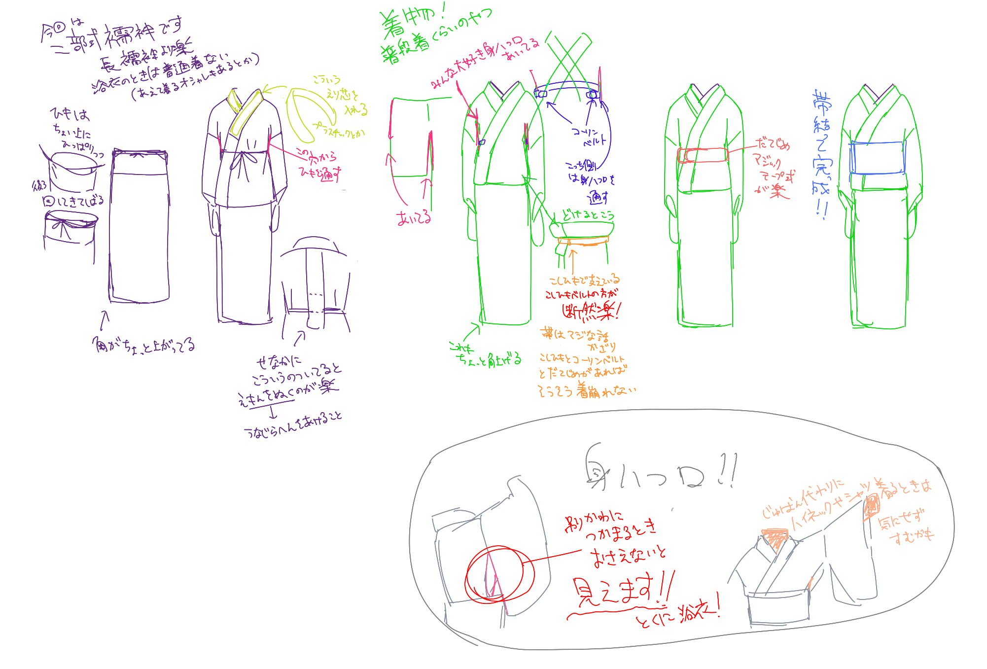 ちょっとコーリンベルトの位置が高い気がしますが忘れてください。あと襦袢の解説が細かくないのはなんだかんだ外から見えないからです。肌着もはしょってますしね。
