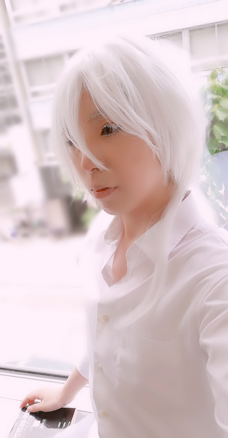 自撮りだけですが、槙島聖護くんのヅラを手直ししたので!割と綺麗に撮れたぞ!!(イベント自体は屋外のですが、ツテで居させてもらった場所で撮ったので写真は屋内だぞ☆)
