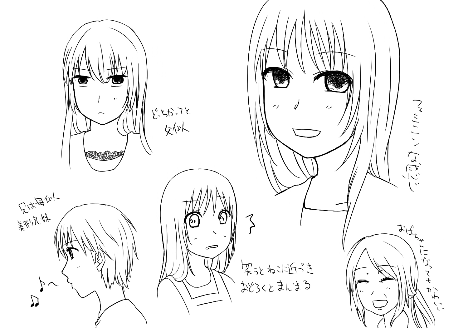 あと数日前(だっけ?)に僕の小規模な奇跡(長いからBSKって呼ぶ)の人たちの見た目妄想した絵あげてあります。そっちは微修正して、この記事のつづきから貼っておきます。